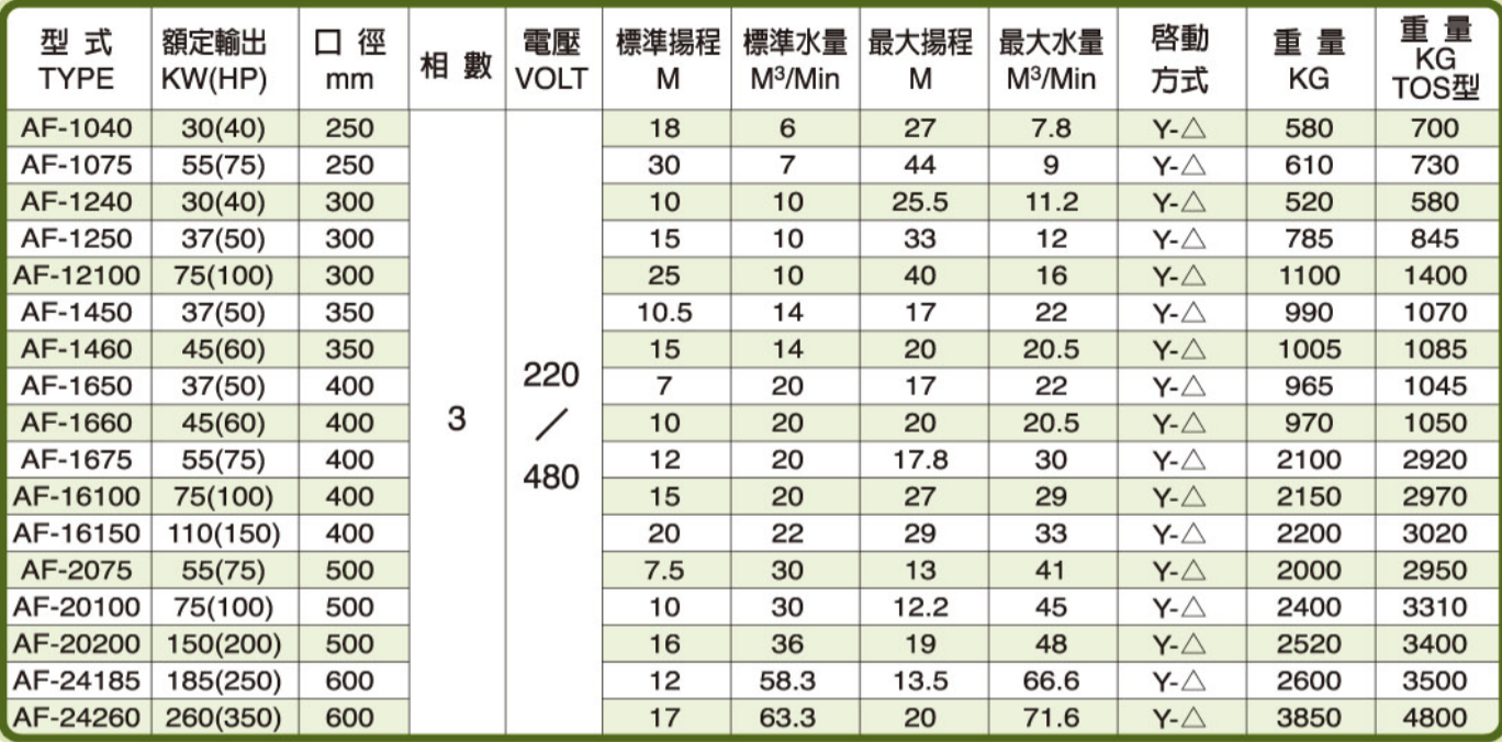 乾式水中誘導型電動機設計,馬達啟動特性,負載、耐久性及溫升控制,都經充分設計考量,所以效率特高。